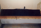 | ピアノを寝かせて底板と 前戸台(ペダルの窓が ある部分)をはずした所 |
